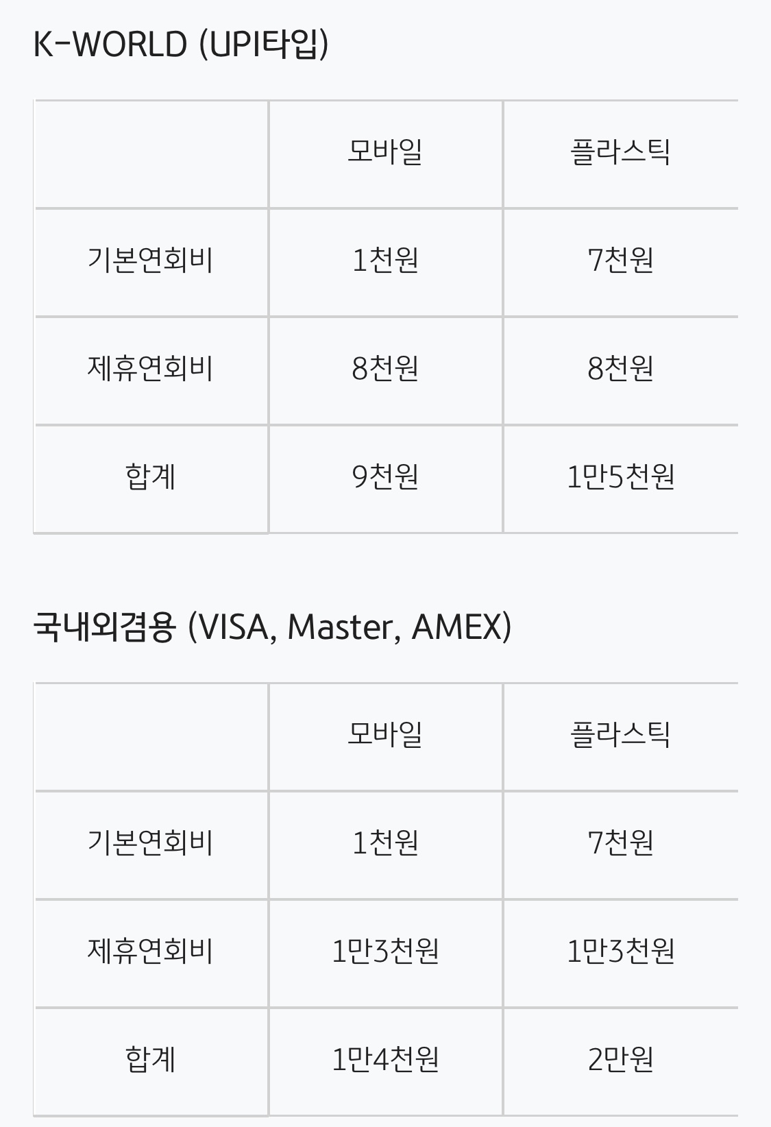 연회비와 카드 주요 혜택은 아래를 참고하면 된다.